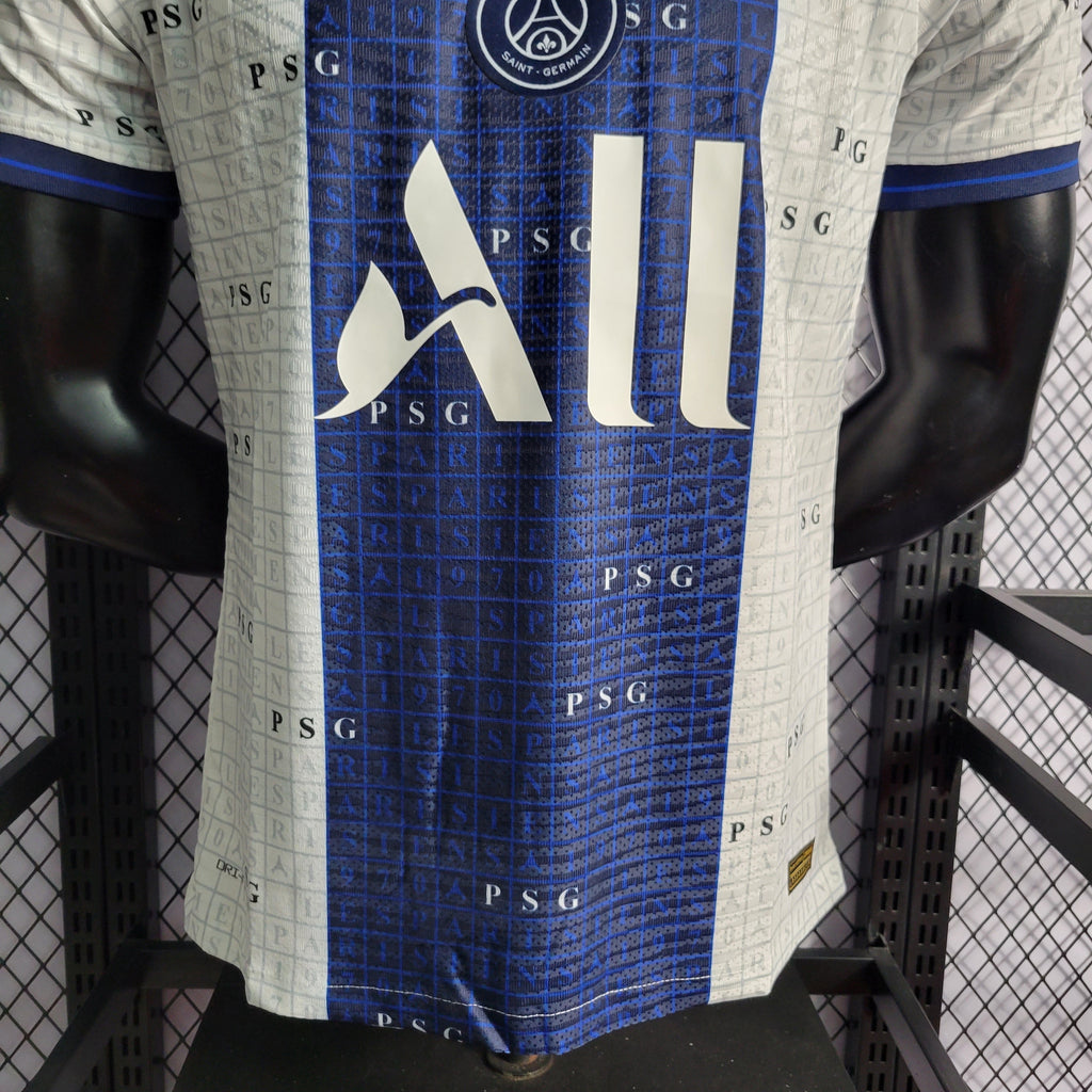 CAMISA VERSÃO PLAYER DO PARIS SAINT GERMAN 22/23 BRANCO E AZUL